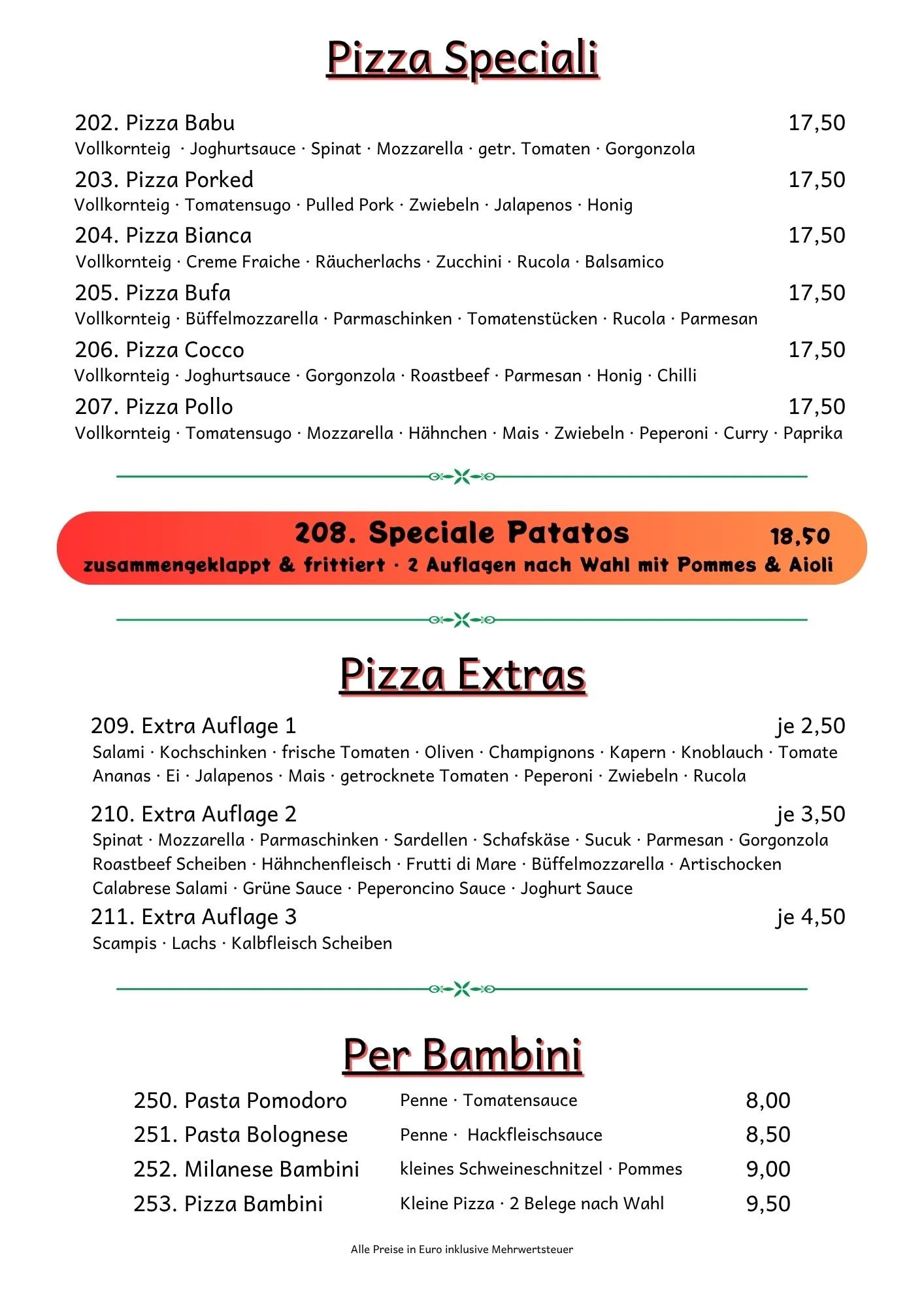 Alle Angaben ohne Gewähr, es gelten ausschließlich die Angaben der im Restaurant ausliegenden Speisekarten.